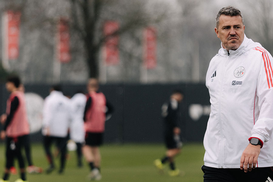 Fred Grim schoof vrijdagochtend aan voor een persconferentie in aanloop naar het uitduel met AZ zondagmiddag om 14:30 uur. De oefenmeester besprak de inzetbaarheid van zijn nieuwelingen, de nummer zes-positie van Ajax en vertelde hij over de voorbereiding richting zondag.