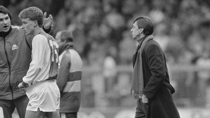 Een kwartier na rust, het is inmiddels 2-0, kijkt Cruijff opzij en zegt: 'Dennis, warmlopen'. In de 66ste minuut verschijnt verzorger Pim van Dord met het wisselbord aan de zijlijn: nummer 11 eruit, 16 erin. Rob Witschge wordt gewisseld voor Dennis Bergkamp.