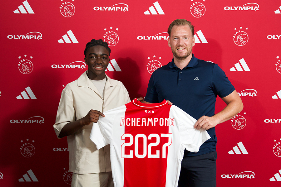 Ajax heeft Levi Acheampong gecontracteerd. De aanvallende middenvelder zette zijn handtekening onder een overeenkomst voor drie seizoenen, tot en met 30 juni 2027. Het betreft het eerste contract voor de jeugdspeler.