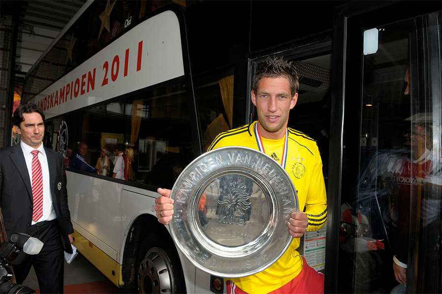 Toen Ajax in 2011 na zeven jaar weer kampioen werd, was de vreugde bij doelman Maarten Stekelenburg zo groot, dat hij per ongeluk de schaal uit de bus liet vallen. Ajax was op dat moment onderweg naar het Museumplein voor de huldiging. Tip: de gedeukte schaal is te zien in de Gallery of Fame tijdens een bezoek aan de Johan Cruijff ArenA.