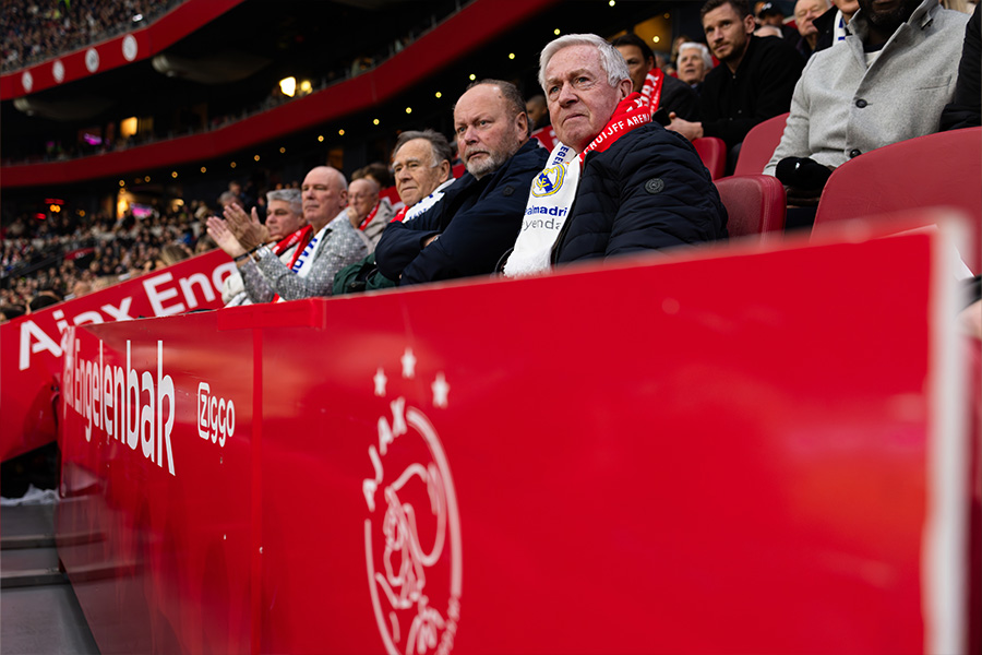 Naast Lasse Schöne, Edo Ophof en Fred Grim keken onder andere Jan Vertonghen, Mario Melchiot, Ferdi Vierklau, Aad de Mos, John Bosman, Yannis Anastasiou, Loïs Schenkel, Heini Otto, Gregory van der Wiel, Tomás Galásek, Andy van der Meijde en Heinz Stuy de wedstrijd vanuit de Engelenbak.