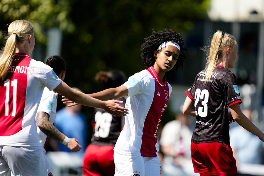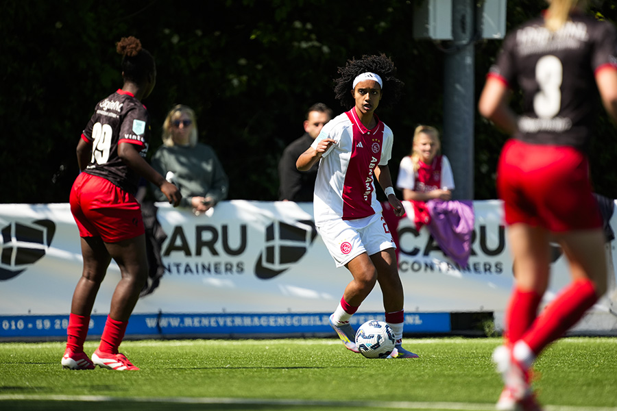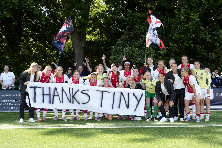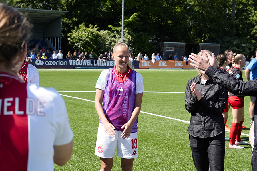 Voor Tiny Hoekstra was de wedstrijd in Rotterdam haar laatste competitieduel. Afgelopen vrijdag maakte ze bekend dat ze na dit seizoen haar voetbalschoenen aan de wilgen hangt. De aanvalster begon zaterdagmiddag aan haar 115e wedstrijd voor Ajax.