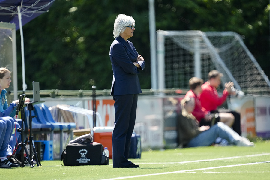 Na vijftien minuten spelen hadden de Amsterdammers het overwicht. De eerste grote kans van de wedstrijd kwam van de voet van Inessa Kaagman. Ze haalde uit, maar haar schot raakte de lat. Ook in de rebound was ze niet trefzeker.