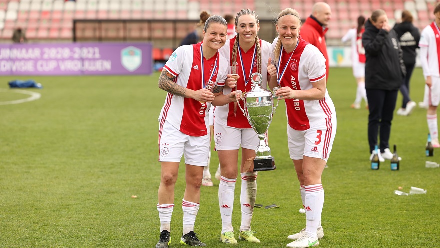 Ajax Vrouwen: Kop, L. Bakker, De Sanders, Van der Gragt, Verhoeve, Spitse, Pelova, Van den Bighelaar, Grant, Tromp (83. Dijkstra), E. Bakker (65. Lewerissa).
