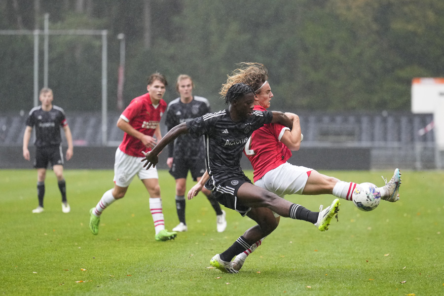 De Ajacieden leken vervolgens met drie punten naar Amsterdam te reizen, maar in de slotfase ging het alsnog mis. Een voorzet vanaf links werd raak gekopt waardoor de topper van O18 geen winnaar opleverde: 1-1.