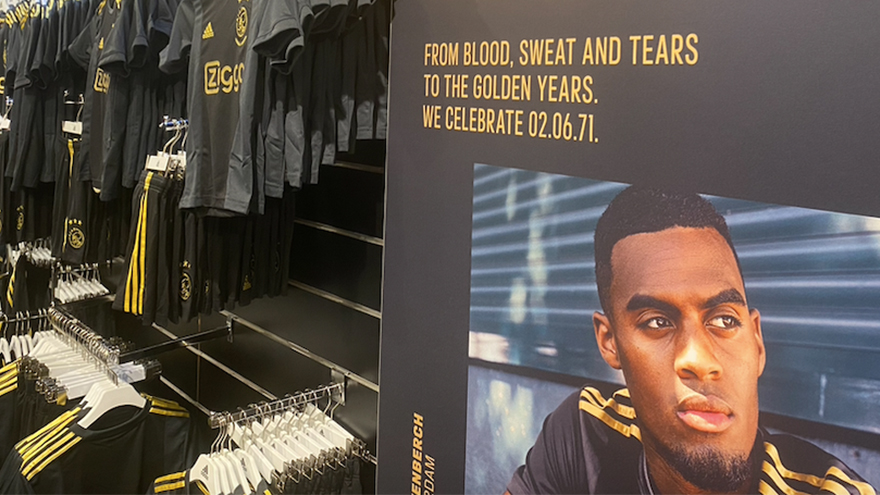 Het zwart-gouden shirt is een eerbetoon aan de 1e Europa Cup 1-winst, komend seizoen 50 jaar geleden.Die historische bekerwinst wordt gesymboliseerd door de gouden lauwerkrans onder het Ajax-logo, met het getal ‘50’ in het midden. Ook is aan de binnenkant van de nek de inscriptie ’02.06.1971’ te vinden; de datum waarop Ajax in Wembley Stadium de 3-jarige hegemonie in Europa startte, later gevolgd door andere Europese overwinningen en successen waaronder de Champions League winst in 1995.
