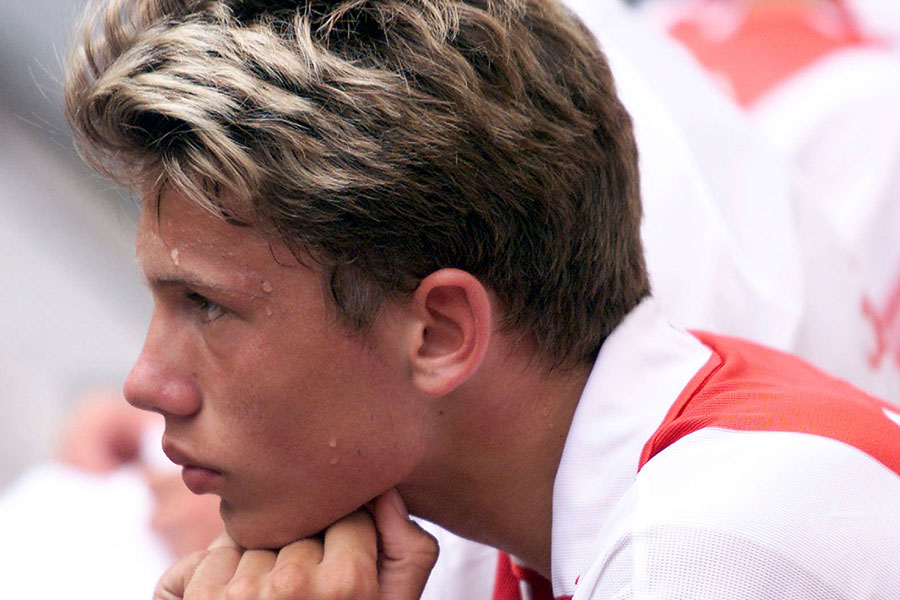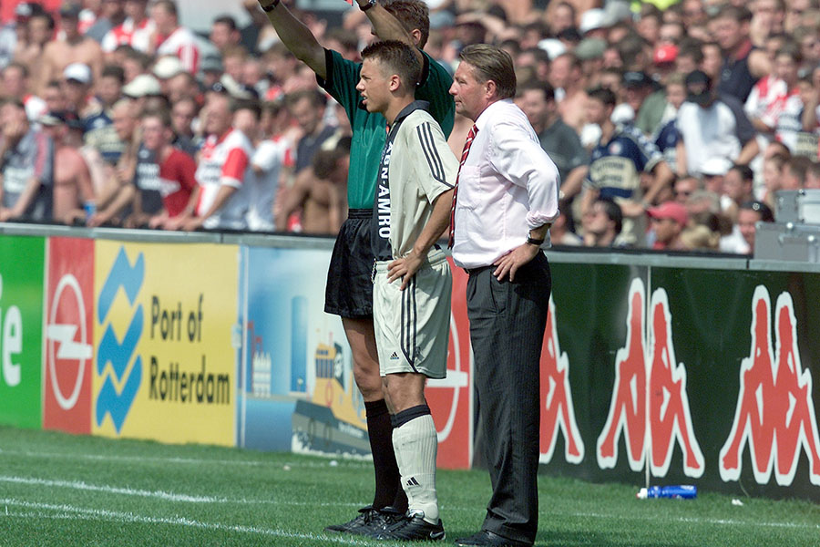 Zijn debuut is er een om niet snel te vergeten. Op 26 augustus 2001 maakt de zeventienjarige Heitinga zijn opwachting voor Ajax 1. In de Kuip, op bezoek bij Feyenoord. Ajax komt met tien man na een rode kaart voor Hatem Trabelsi en trainer Co Adriaanse brengt Heitinga voor Shota Arveladze als extra versterking van zijn defensie bij een 0-1-voorsprong. De Amsterdammers winnen met 1-2.