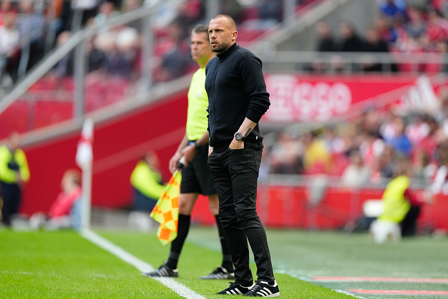 Diezelfde rol, weliswaar in het begin als interim-hoofdtrainer, bekleedt hij anderhalf jaar later bij Ajax 1. De rasechte Ajacied neemt het stokje over van Alfred Schreuder en staat op 29 januari 2023 voor het eerst voor de groep op bezoek bij Excelsior. De Amsterdammers winnen met 1-4 en de club maakt even later bekend dat Heitinga het seizoen als hoofdtrainer afmaakt. Ajax eindigt op plek drie en de oud-jeugdspeler vertrekt na het seizoen naar Engeland. Daar is hij twee seizoenen assistent-trainer. Eerst van David Moyes bij West Ham United en afgelopen seizoen bij de kampioen van Engeland onder Arne Slot: Liverpool.