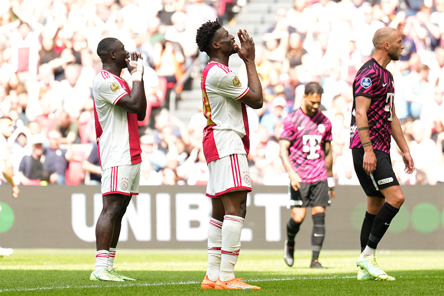 Ajax heeft speelronde 33 afgesloten met drie punten. De ploeg van John Heitinga wist in de eigen Johan Cruijff ArenA de laatste thuiswedstrijd van het seizoen met 3-1 te winnen van FC Utrecht. Dankzij de zege tegen de Domstedelingen en het puntenverlies van PSV maken de Amsterdammers nog steeds kans op de tweede plek in de Eredivisie.