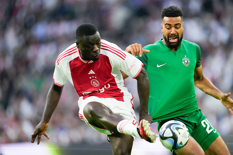 Chuba Akpom en Georges Mikautadze stonden woensdagochtend voor de eerste keer op het trainingsveld bij Ajax. De nieuwelingen doen donderdag nog niet mee in de UEFA Europa League. Ze kregen wel een warm welkom van de overige selectiespelers.