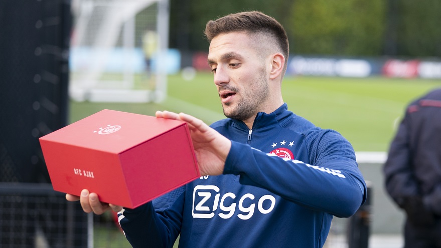 Aanvoerder Tadic vierde vrijdag zijn 32e verjaardag. En dat ging niet onopgemerkt voorbij. Hij nam langs het trainingsveld een doos vol Servische lekkernijen in ontvangst.