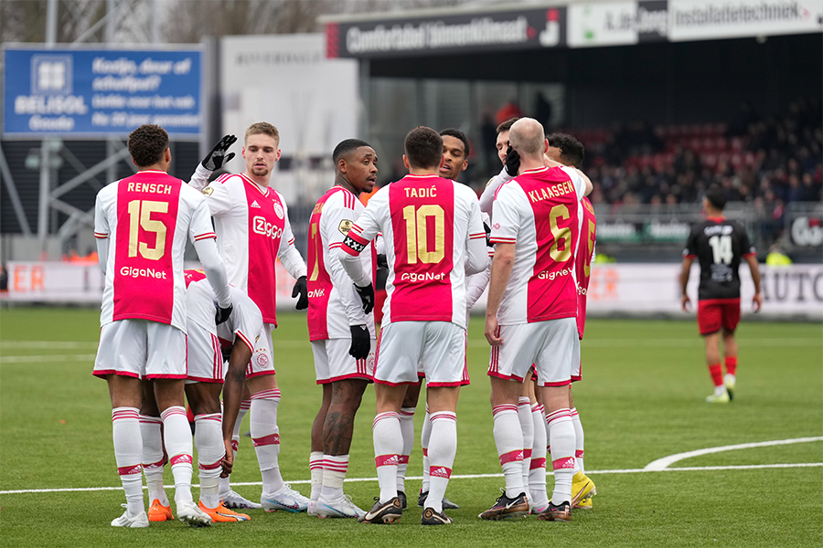 Ajax heeft zondagmiddag zijn eerste competitiezege van het kalenderjaar geboekt. De Ajacieden waren in Rotterdam met 1-4 te sterk voor Excelsior. Bij Ajax nam John Heitinga de honneurs waar na het vertrek van Alfred Schreuder. Hij zag Dusan Tadic (strafschop), Davy Klaassen, Mohammed Kudus en Devyne Rensch de Amsterdamse goals maken.