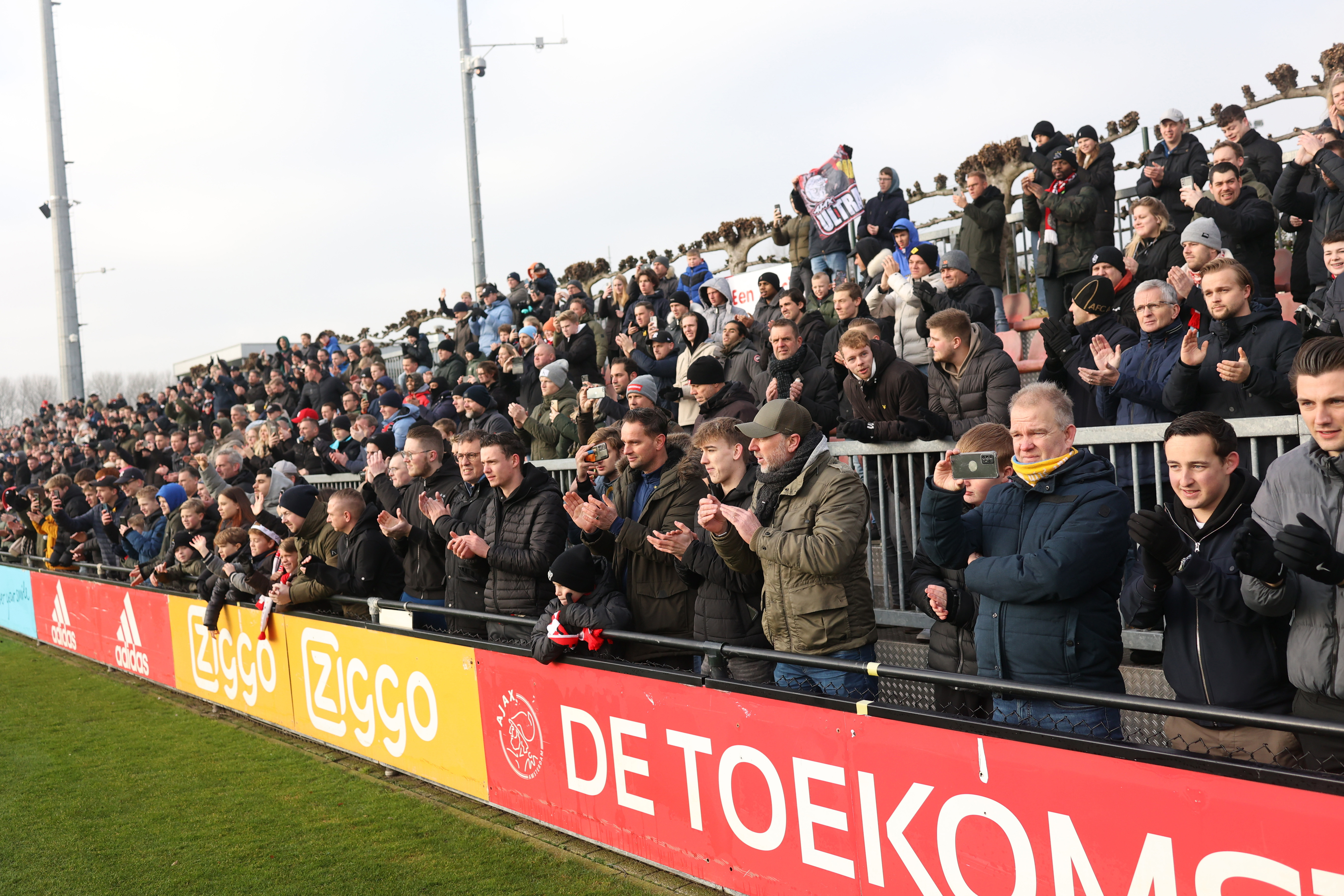 Onder luid applaus en met veel gezang werden de Ajacieden op het veld gesteund tijdens de oefensessie op de Toekomst. De fans waren massaal afgekomen op de laatste training. Het leverde fraaie beelden op.