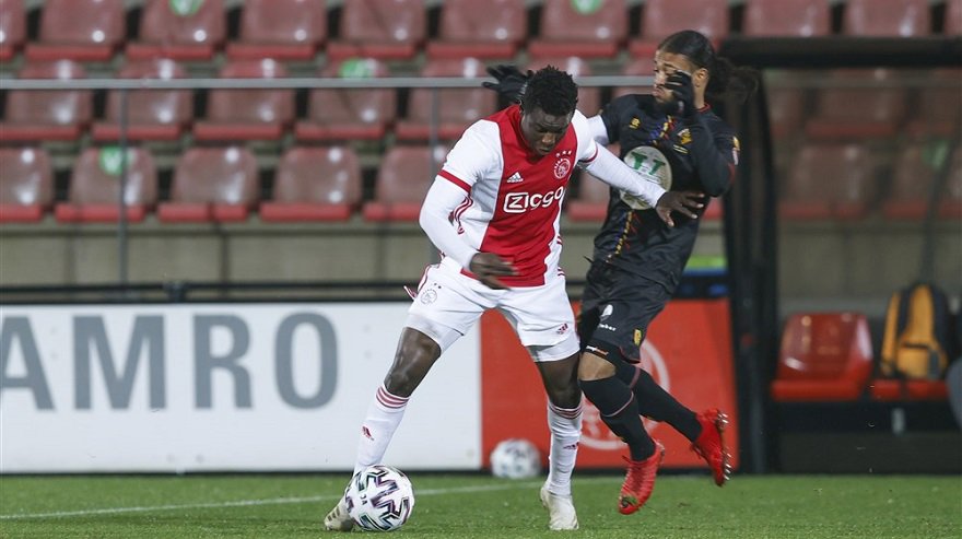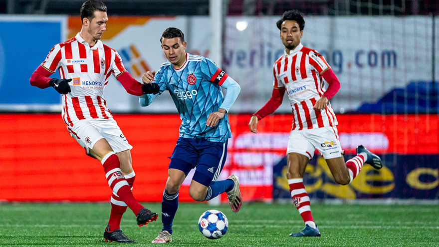 Met een mooie aanval vlak voor rust had Jong Ajax alsnog gelijk kunnen komen, maar inzetten van Pinas en Donny Warmerdam waren een prooi voor keeper Bo Geens.