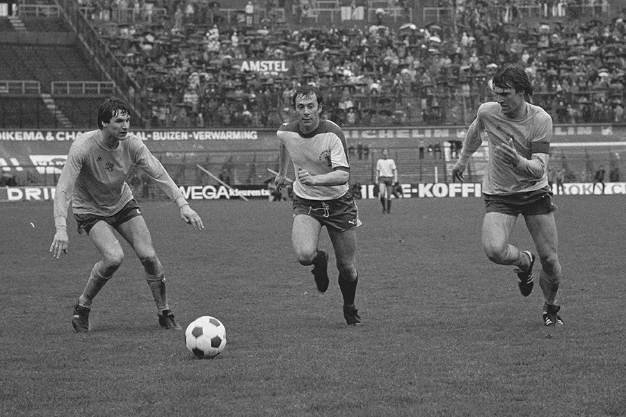 De verdediger was er wel bij in Engeland. Goed gekleed en met krukken meldde Krol zich tussen het publiek en vermaakte hij zich opperbest. "Ruud had een prachtig pak aan, want hij was gecharmeerd van kleding. Zo ben ik ook ooit meegegaan naar zijn kleermaker. Ik wilde ook wel zo'n strak kostuum met wijde pijpen", lacht Stuy. "We kochten stof in Amsterdam en lieten bij zijn kleermaker een prachtig pak maken."