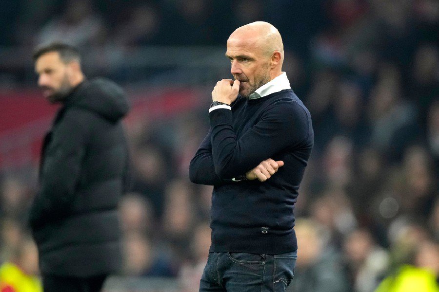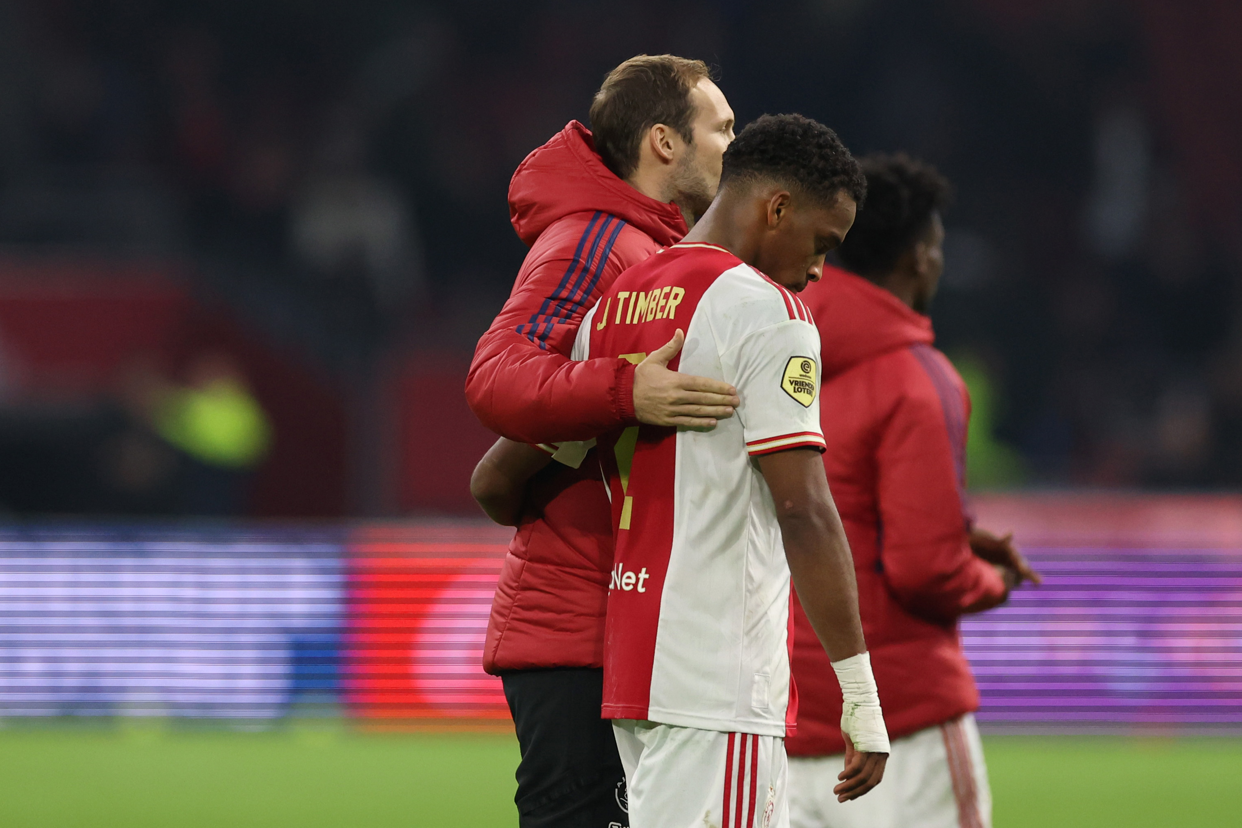 Alfred Schreuder en Lorenzo Lucca blikten in de Johan Cruijff ArenA teleurgesteld terug op de met 1-2 verloren wedstrijd tegen PSV.