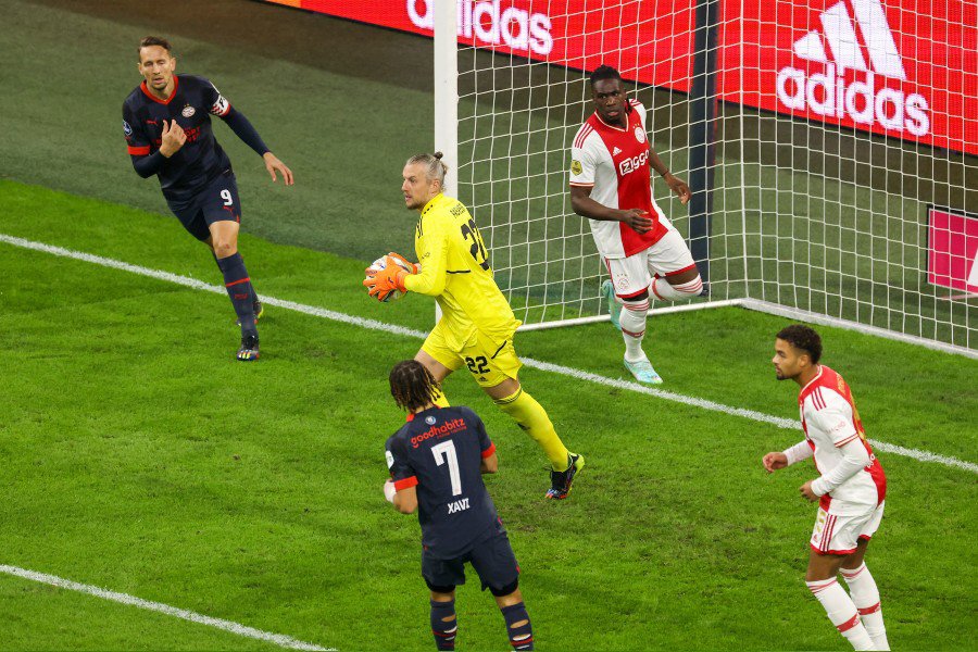Het is niet meer dan overleven nu voor PSV. Ajax is heel erg nadrukkelijk op jacht naar de gelijkmaker. Zojuist was Álvarez ook al best dicht bij. Lukt het dan toch nog om minimaal de 2-2 te maken?