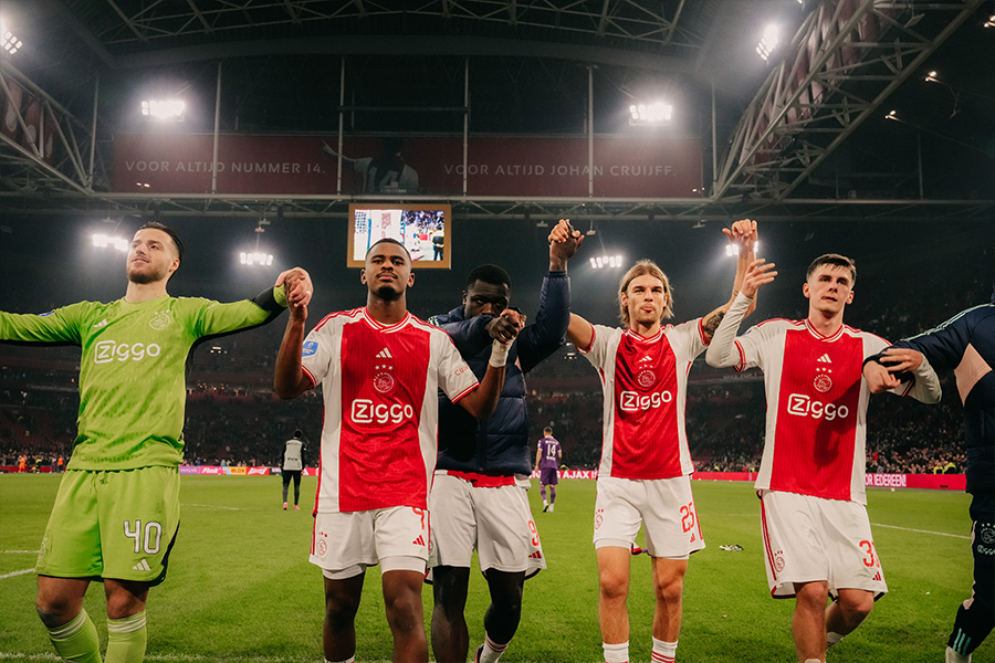 De Ajax-selectie vierde de overwinning vanavond met de supporters in de Johan Cruijff ArenA. Bedankt voor de steun allemaal!
