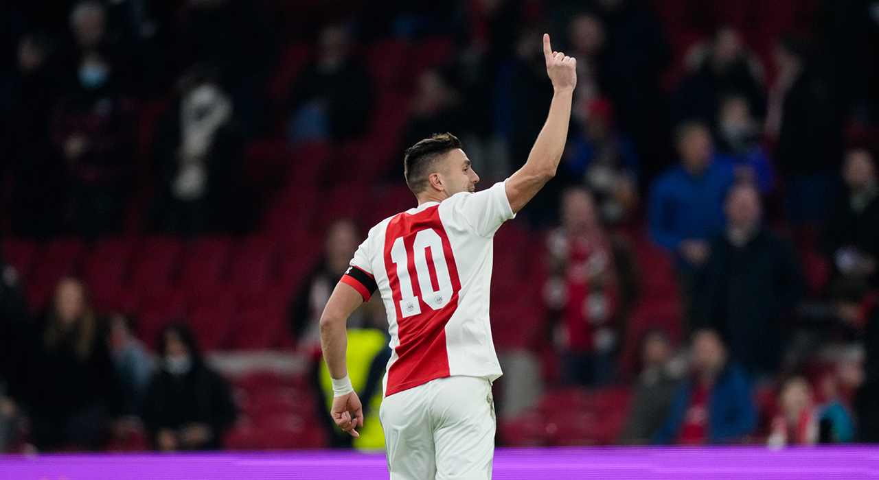 Zelfs na de 4-0-voorsprong bleef Ajax jagen op nog meer goals. "Dit is de energie die je wil zien van de ploeg", sprak de trainer. "Wij waren ontzettend scherp. We stonden goed in de restverdediging en zaten er bij balverlies direct bovenop. Ik hoop dat we dit kunnen continueren. We willen zo lang mogelijk meedoen op drie podia."