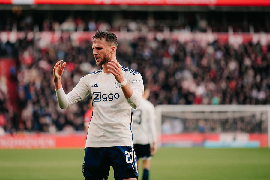 Ajax zoekt met enige regelmaat de diepte bij Brian Brobbey en Steven Bergwijn. Dat is tot op heden een goede tactiek, want opnieuw zijn de beide aanvallers gevaarlijk. Helaas wordt een schot van Bergwijn op het laatste moment geblokt.