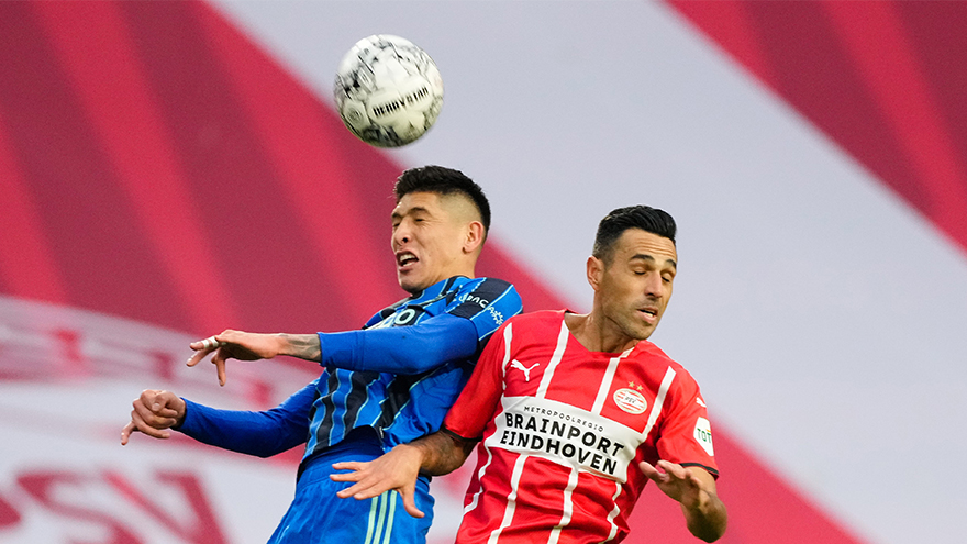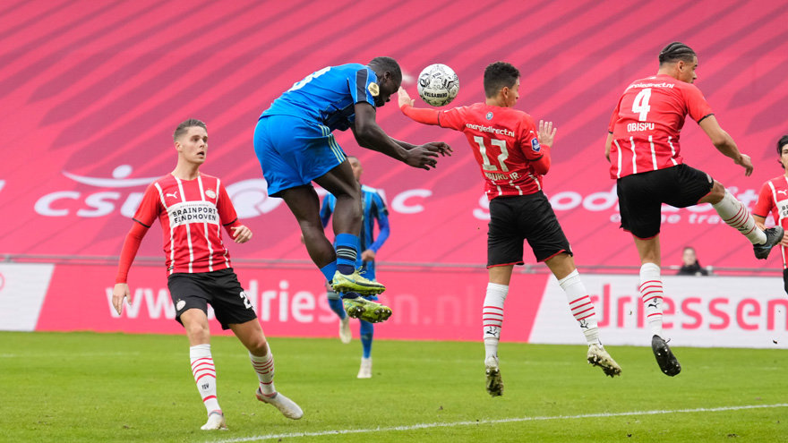 Minimaal negen minuten extra tijd in Eindhoven. Vanwege het checken van de 1-2 door de VAR lag het duel lang stil.