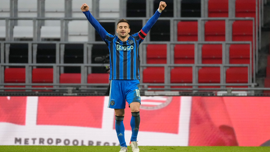 De vreugde na de zege in Eindhoven was groot. We hebben nog even een kleine slider met heerlijke juichbeelden van Tadic, Álvarez en een groep Ajacieden.