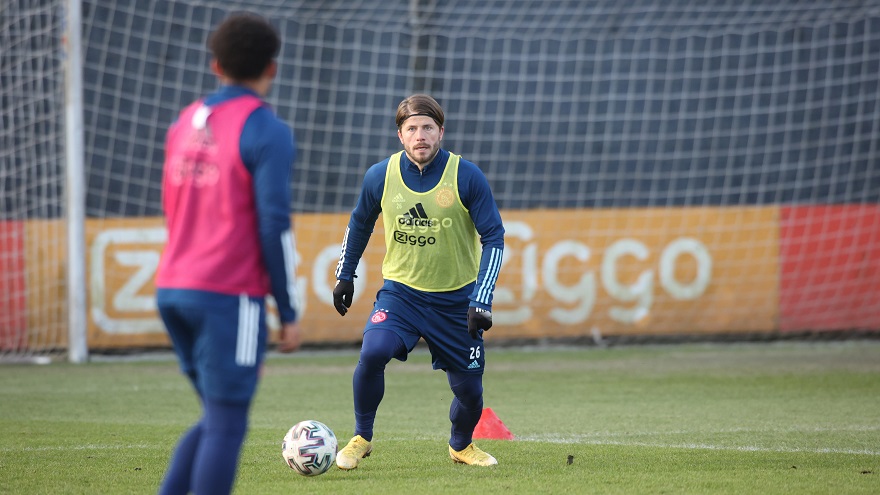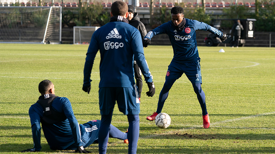 De Ajax-spelers trainden woensdagmiddag in aanloop naar FC Twente – Ajax lekker in een lekker winterzonnetje. Goed nieuws uit de ziekenboeg; Lassina Traoré stond op het veld en ook David Neres trainde volop mee.