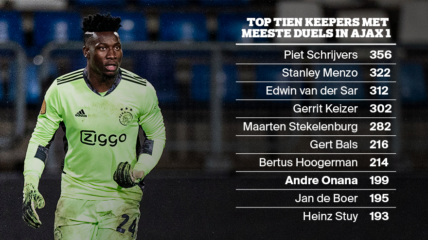 - Onana daarmee in de top tien komt te staan van keepers met meeste wedstrijden voor Ajax achter hun naam?