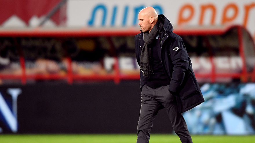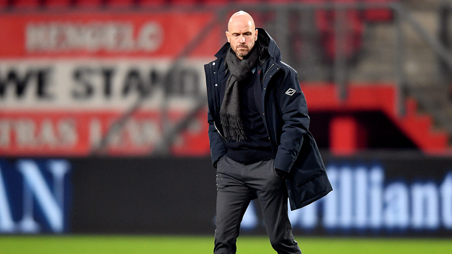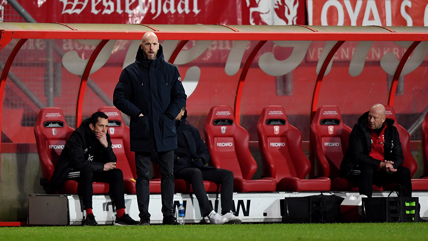 Erik ten Hag heeft in zijn eentje al even een rondje gemaakt over het veld in De Grolsch Veste.