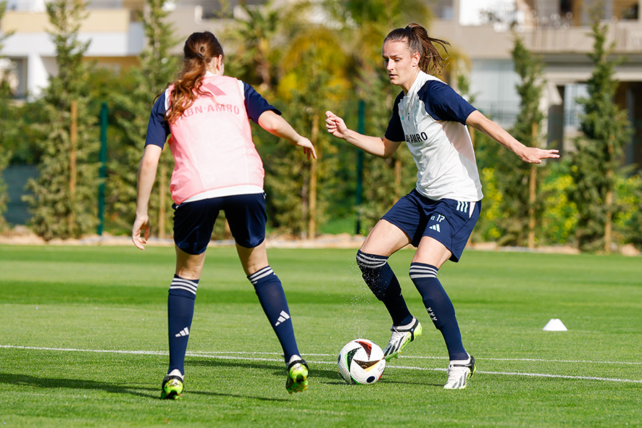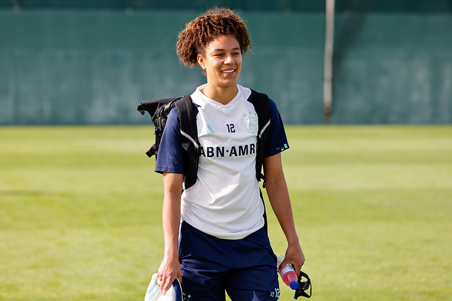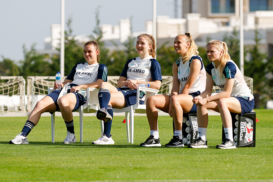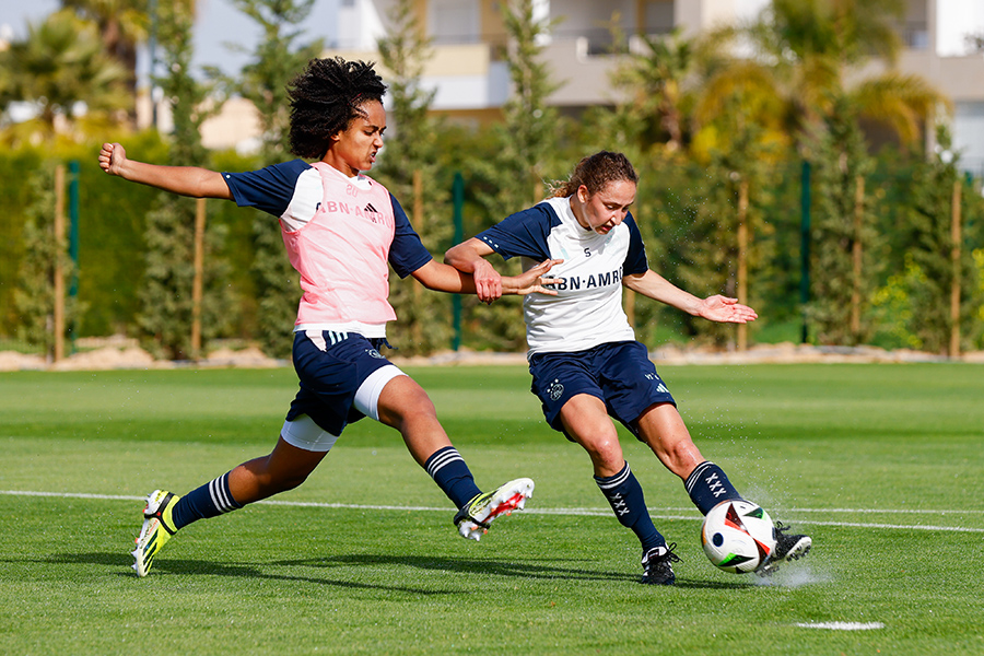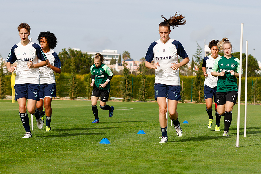 Daags na het duel met VfL Wolfsburg is er een uitlooptraining voor de Ajax Vrouwen. De wisselspelers zijn intensief bezig en de basiself kijkt toe in het zonnetje. Een relaxed einde van het trainingskamp in Portugal.