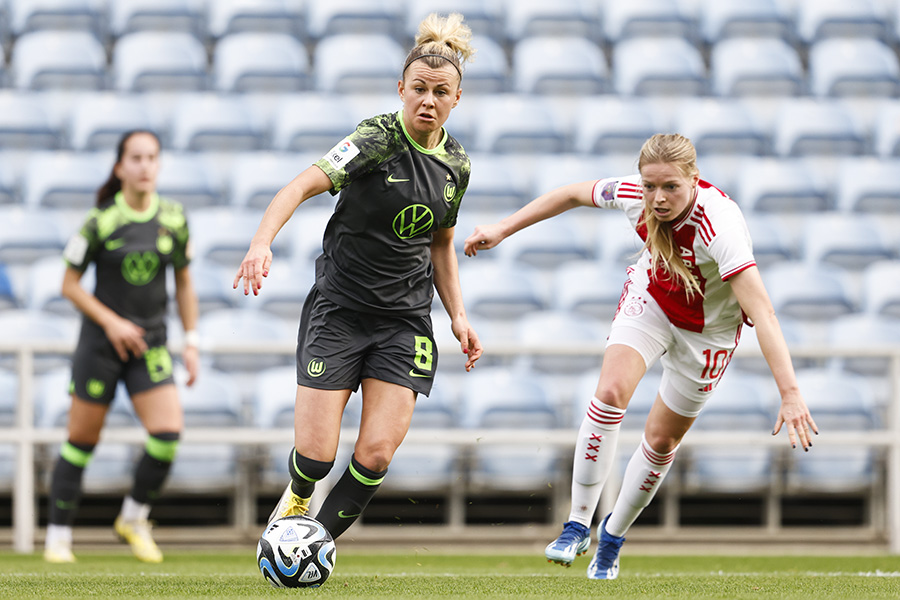 De wedstrijd is inmiddels 35 minuten bezig en de Ajax Vrouwen hebben nog altijd veel moeite om kansen te creëren. Ook VfL Wolfsburg doet het na de sterke openingsfase rustig aan en geeft Ajax de bal.
