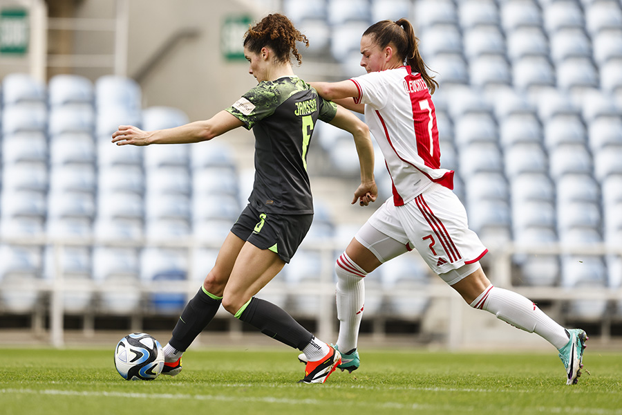 Na de twee snelle tegentreffers komt het duel iets meer in evenwicht. De Ajax Vrouwen proberen de aanval te zoeken, maar de Duitse organisatie staat goed waardoor het lastig is om tot kansen te komen.
