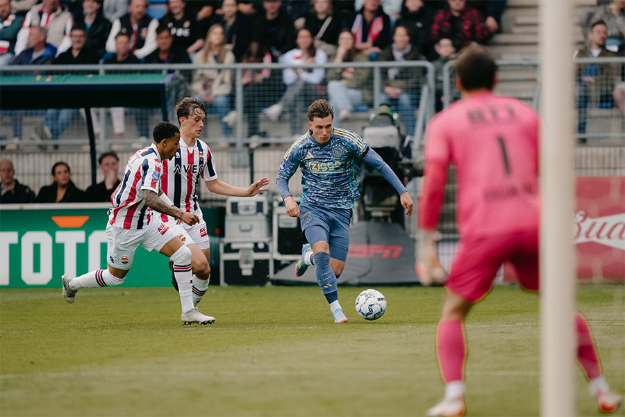 In Brabant was Ajax inderdaad heel lang de bovenliggende partij, maar kwam het moeilijk tot scoren. "De statistieken waren niet normaal: in de eerste helft hadden we meer dan dertig balcontacten in het strafschopgebied van Willem II."