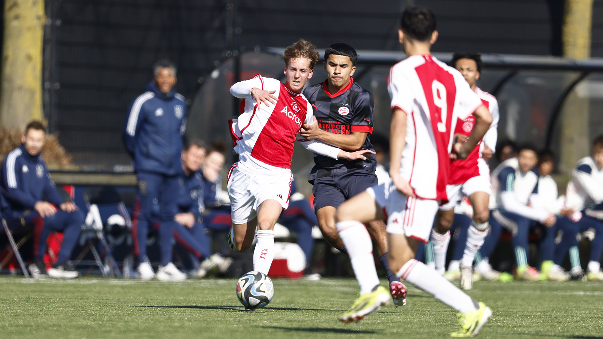 Ajax O15 en O16 spelen een belangrijke wedstrijd tegen PSV. Een overwinning betekent voor beide ploegen dat de kopposities in zicht blijven. Om 12:00 uur begint de O15 aan hun wedstrijd op de Toekomst. Bij winst gaan de Amsterdammers nummer drie PSV voorbij. Om 13:30 uur treedt de O16 aan op PSV Campus de Herdgang. Ajax O16 staat één punt boven de Eindhovenaren en vier punten achter koploper Go Ahead Eagles. Voor de O14 van Ajax wacht om 14:30 uur Vitesse op Nationaal Sportcentrum Papendal in Arnhem.