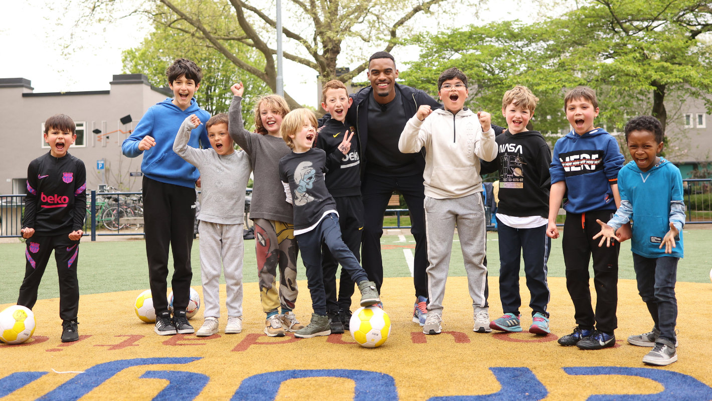 Ryan Gravenberch, die vorig jaar de prijs voor Johan Cruijff Talent van het Jaar in de Eredivisie ontving op datzelfde pleintje, was net als de enthousiaste kinderen aanwezig. Tijdens de prachtige middag in Betondorp deelde de middenvelder handtekeningen uit op het veldje om de hoek van het ouderlijk huis van Cruijff. De Ajacied overhandigde de bal aan de jeugd en gaf daarmee het startsein voor een potje voetbal op het Cruyff Court.