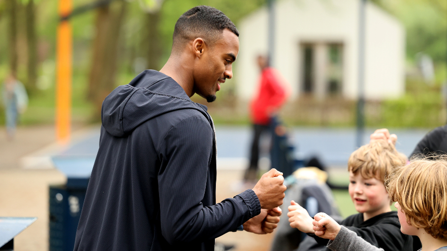 Ryan Gravenberch, die vorig jaar de prijs voor Johan Cruijff Talent van het Jaar in de Eredivisie ontving op datzelfde pleintje, was net als de enthousiaste kinderen aanwezig. Tijdens de prachtige middag in Betondorp deelde de middenvelder handtekeningen uit op het veldje om de hoek van het ouderlijk huis van Cruijff. De Ajacied overhandigde de bal aan de jeugd en gaf daarmee het startsein voor een potje voetbal op het Cruyff Court.