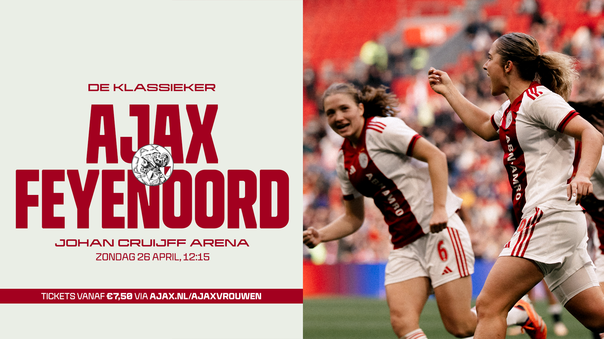 Kom in de meivakantie naar de wedstrijd Ajax Vrouwen – Feyenoord. De Klassieker wordt op zondag 26 april om 12:15 uur gespeeld in de Johan Cruijff ArenA.