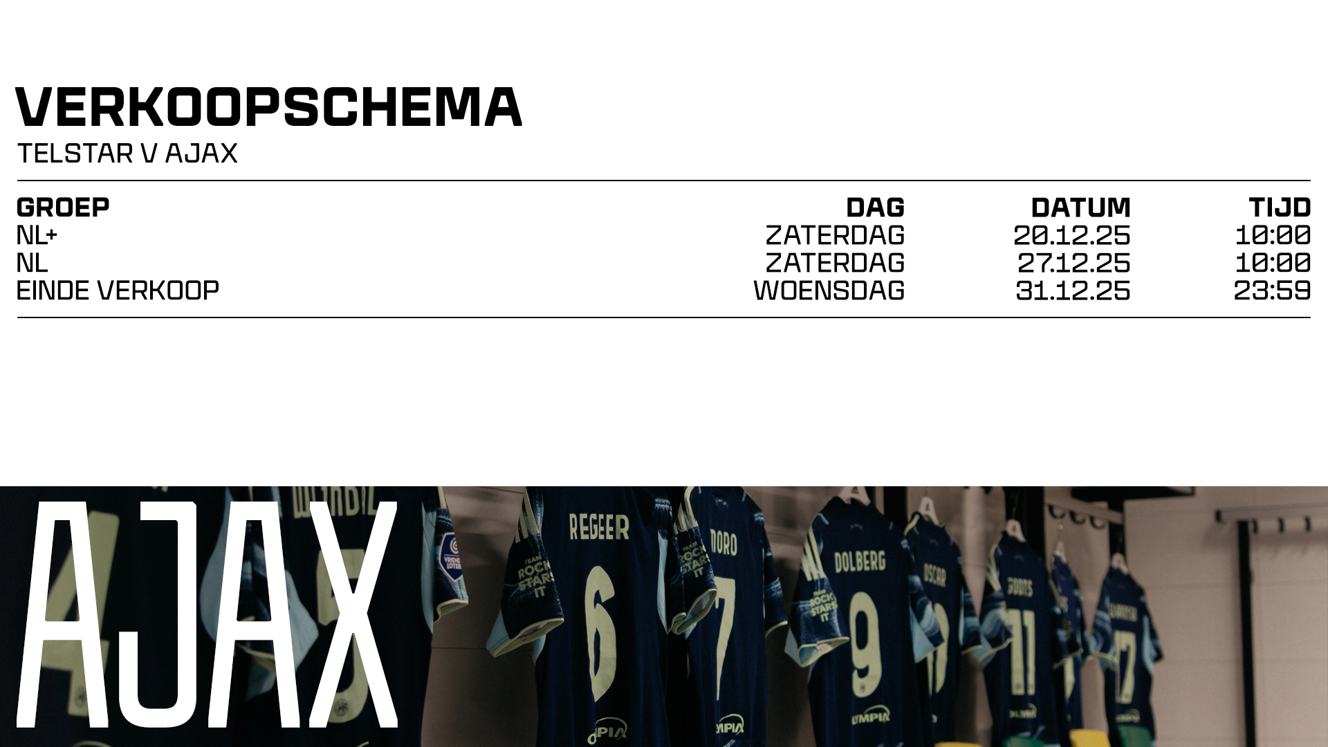 Kaart gekocht? Meer informatie over het wedstrijdbezoek volgt per mail op 8 januari. Niks missen rondom uitduels? Zet de pushmeldingen aan voor de Ajax app of volg @ajaxfancare via X en Instagram.