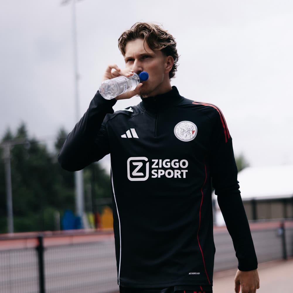 De Ajax-trainingscollectie 25/26 is zwart met rood en wit gekleurd. De kleuren van onze stad, ter ere van 750 jaar Amsterdam. Ook keert het klassieke Ajax-logo terug, voor altijd.